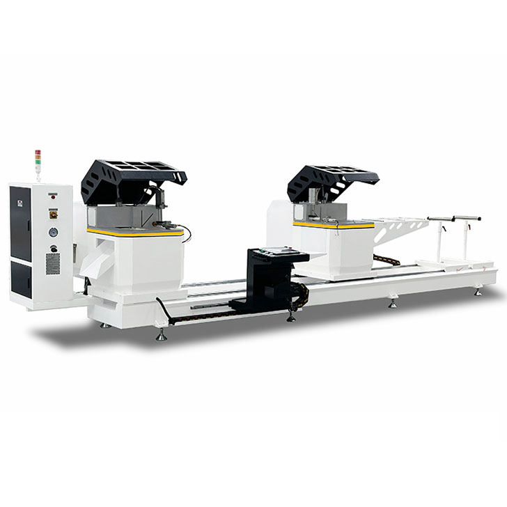 CNC-600*5000 double head aluminum profile cutting saw is designed for industrial aluminum profiles, thermal break aluminum doors, windows, and curtain wall materials, also suitable for PVC and wood profiles. It features an imported high-speed motor with a diamond blade and air-liquid damping for stable cuts. The machine offers precise, adjustable cutting angles from 22.5° to 157.5°, driven by an imported servo motor.
